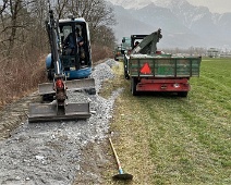 Massiver Einsatz von Baumaschinen bei der Erstellung des neuen Fussweg im Fressguet (Schinderhütta).