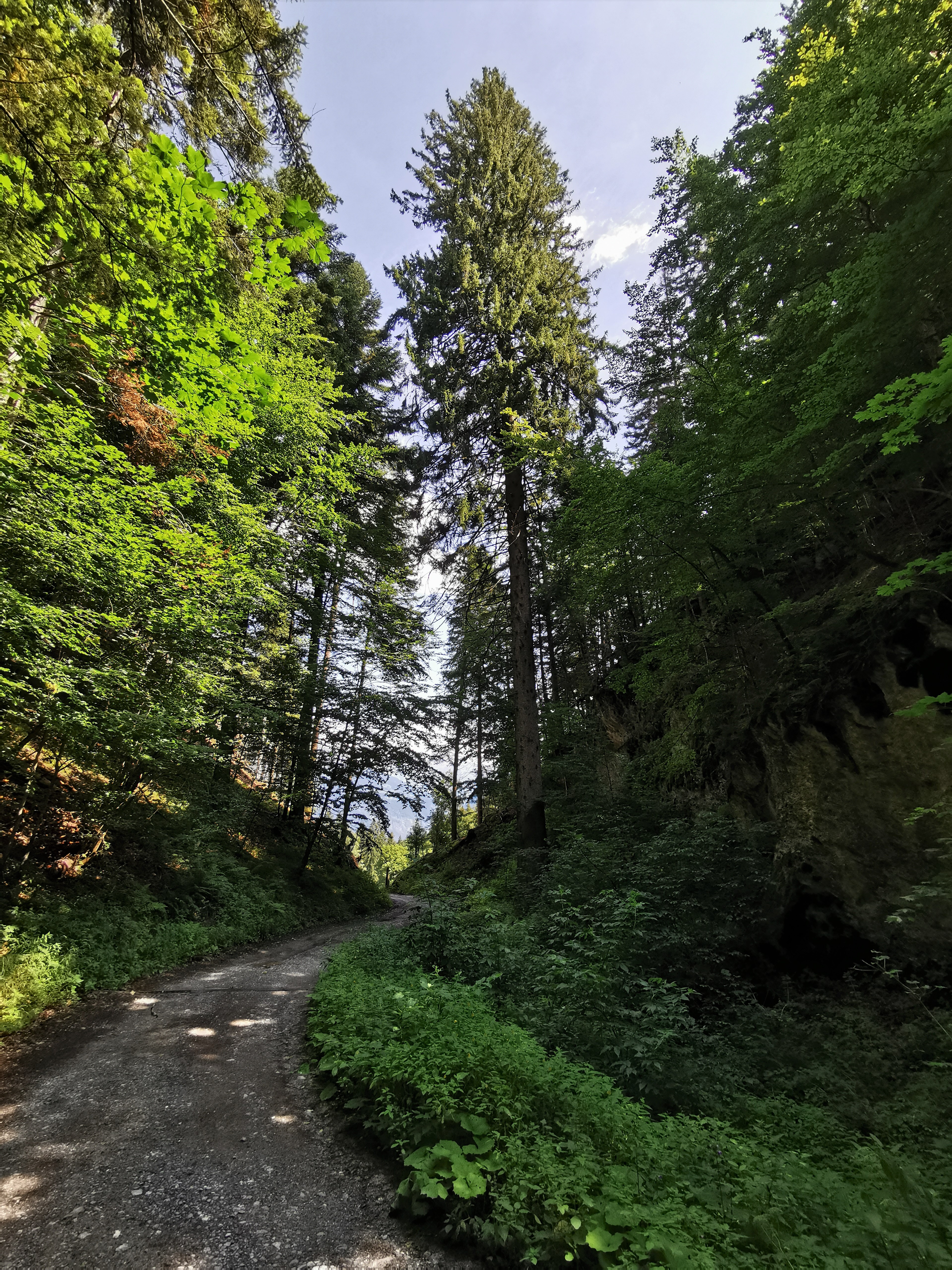 Blick nach Norden in das Undertöbeli vor der Strassenerweiterung (2022). Zentral im Bild die ca. 54 m hohe Fichte (ein Wahrzeichen des Undertöbelis), welche vor…