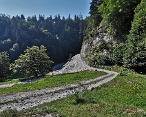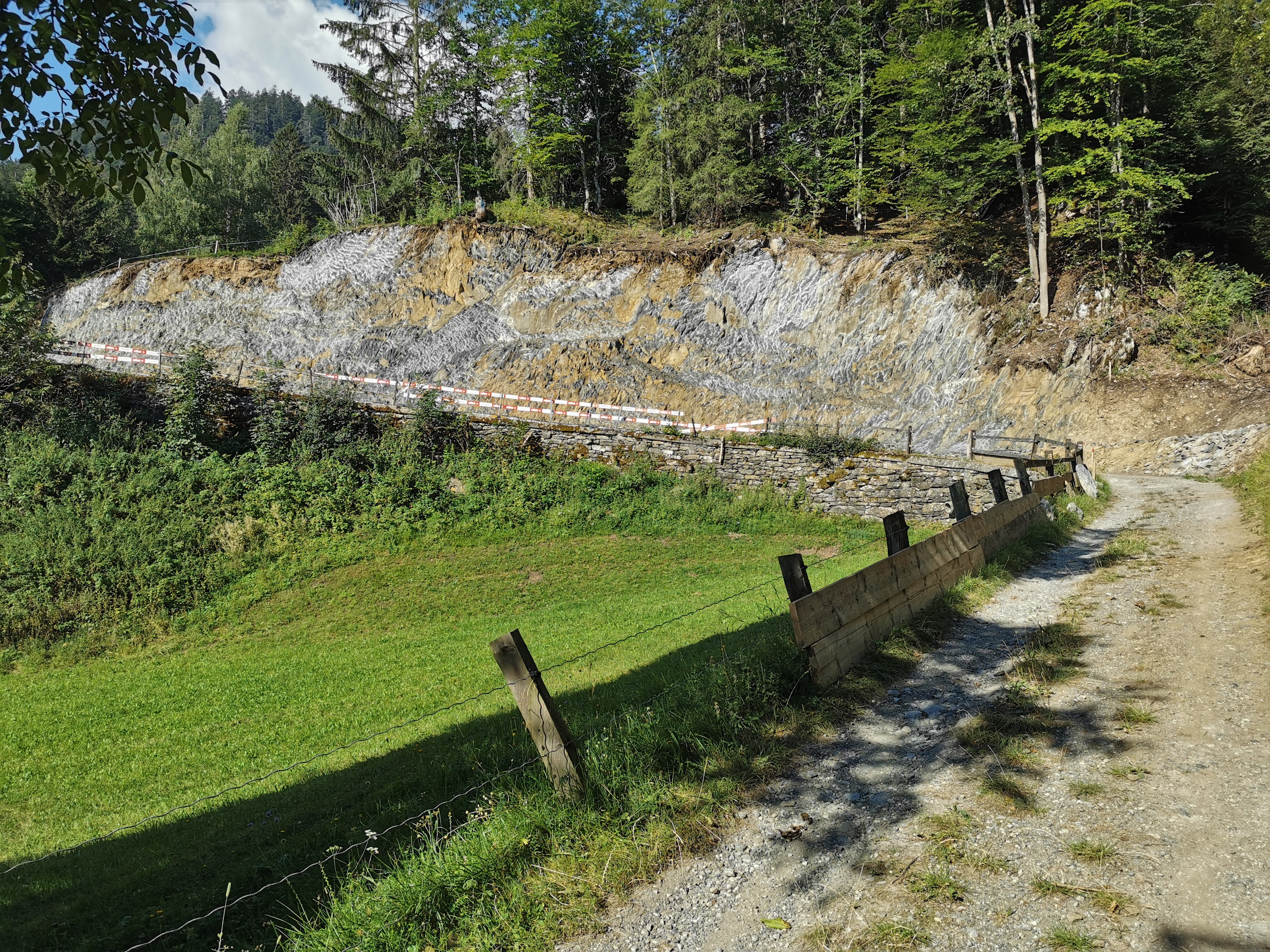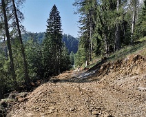 Deutlich erweiterte Trasse der Alpstrasse vom Lat hinab zum Pramanengel, Blick nach Norden.