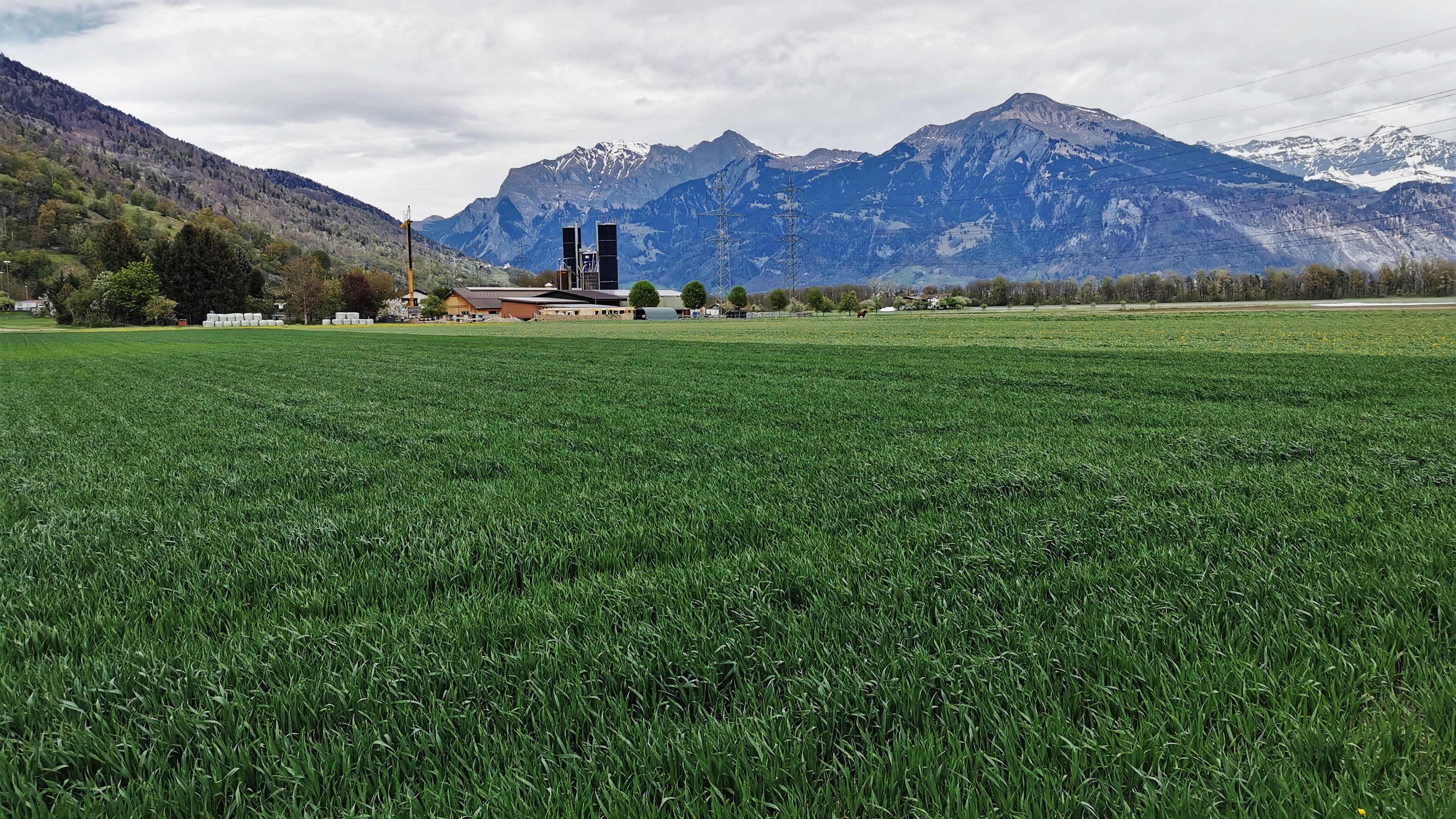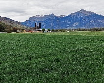Blick über das Palü-Feld (ca. 531 m) nach Nordosten zum Rätikon mit dem präsenten Vilan (2.375 m) in der rechten Bildhälfte. In der Bildmitte im Hintergrund…