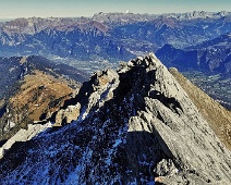 Ausblick vom Haldensteiner Calanda (2.805 m) über dessen Nordgrat nach Nordosten. Der Vilan hebt sich aus dieser Perspektive kaum noch gegen die deutlich…