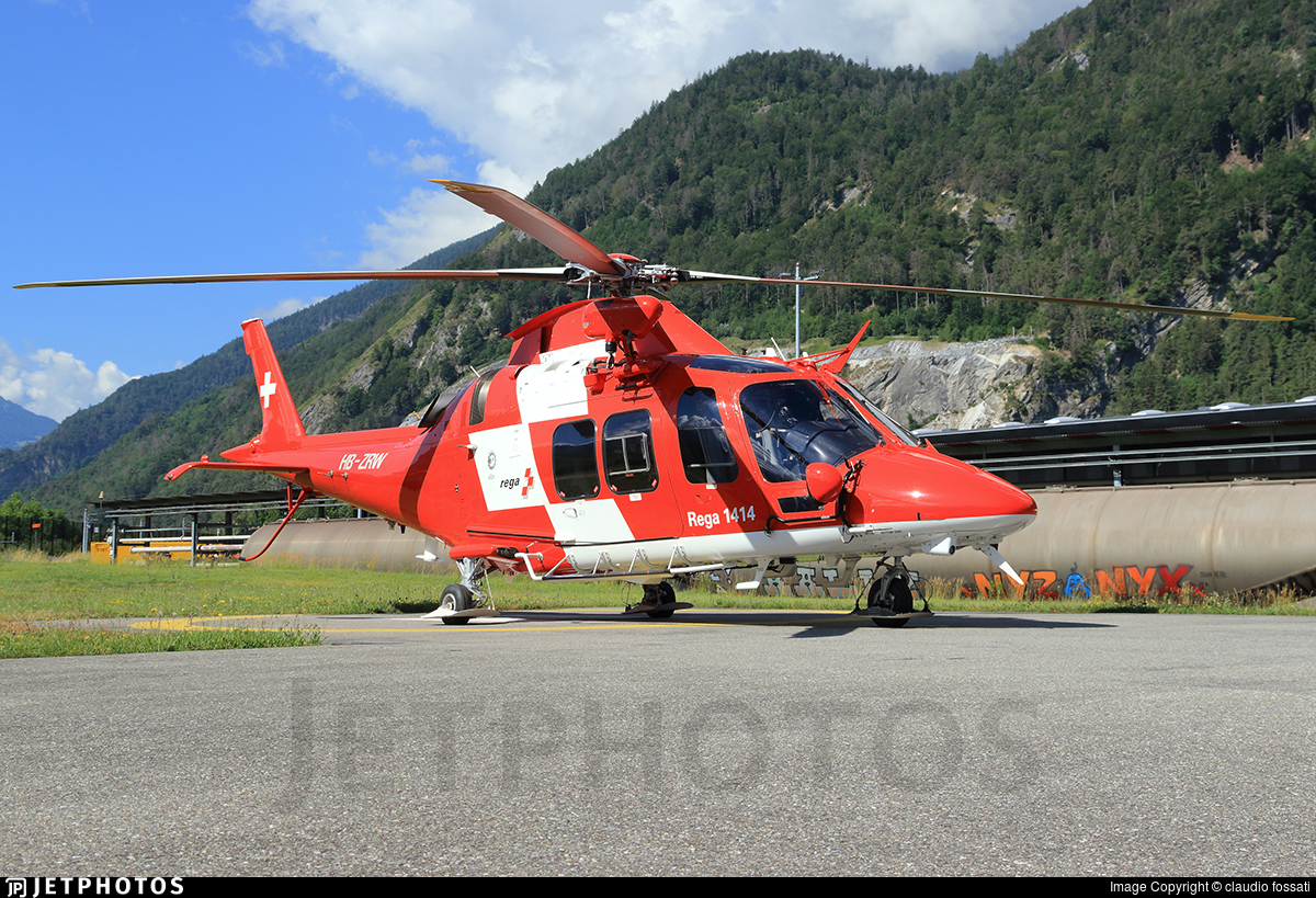 Blick vom Landeplatz des Heliports nach Südwesten, im Vordergrund die "Agusta-Westland AW-109SP" (Kennung "HB-ZRW") der Rega. Im Hintergrund der Luschopf (1.024…