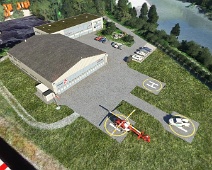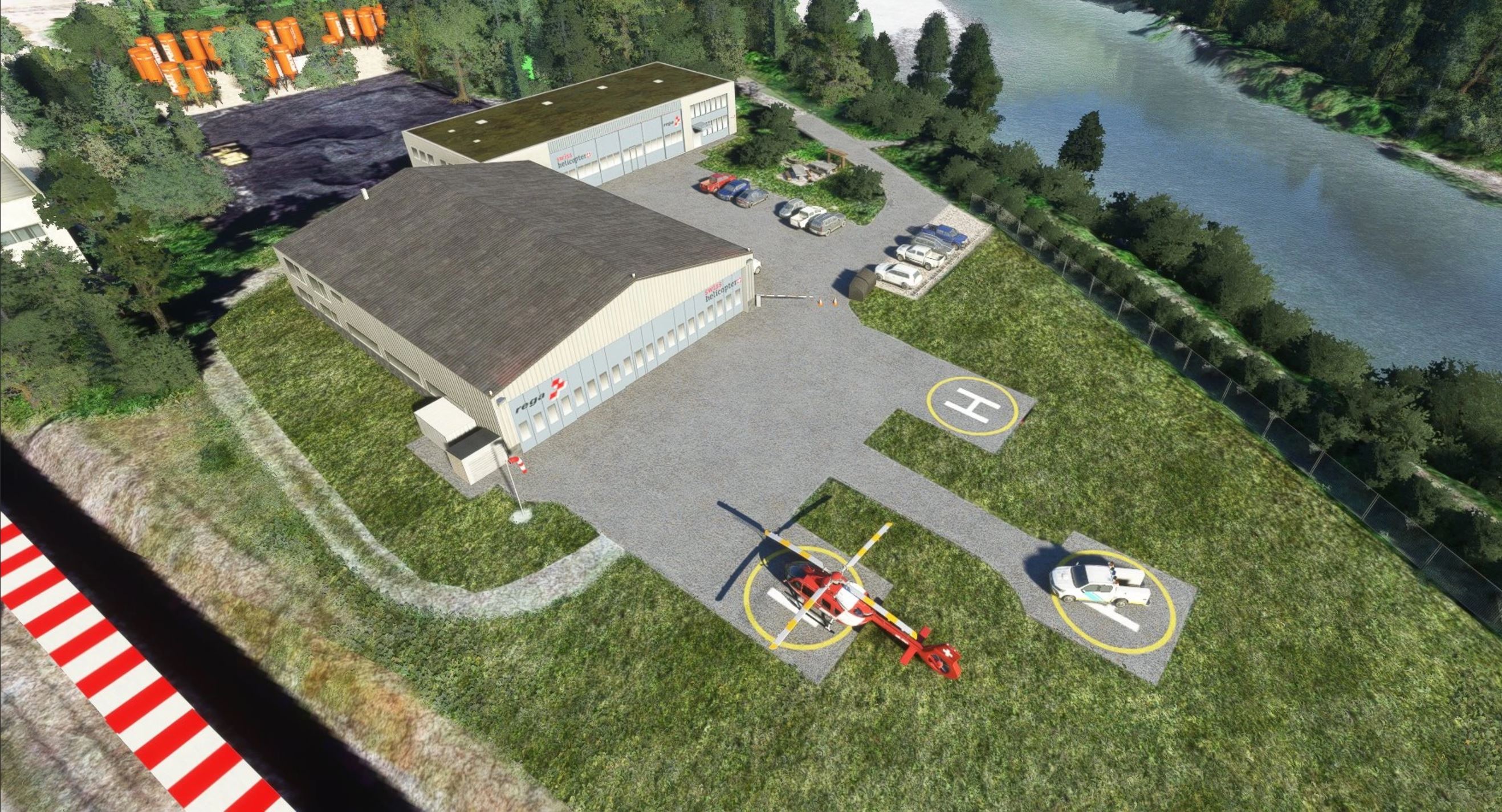 Screenshot vom MS Flugsimulator vom Landeplatz "LSXU" (Heliport Untervaz) mit detailgetreuer Nachbildung der Realität.