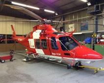 Gebirgshelikopter "AgustaWestland Da Vinci" (Baujahr 2009) im Hangar des Heliports am Polenlöserweg.