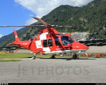 Links im Vordergrund ein "Ecureuil H125 (AS 350 B3)" der Swiss Helicopters, im Hintergrund der Gebirgshelikopter "AgustaWestland Da Vinci" (ab 2010) mit der…