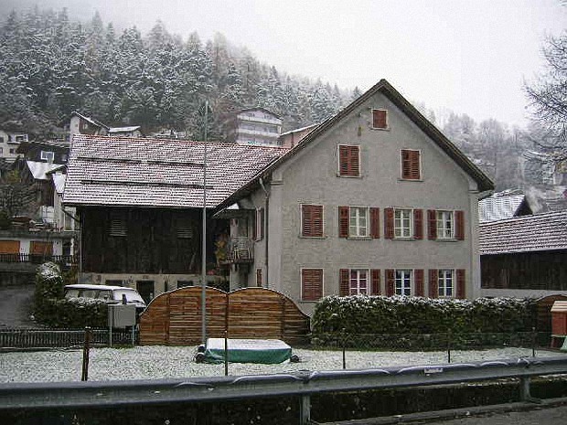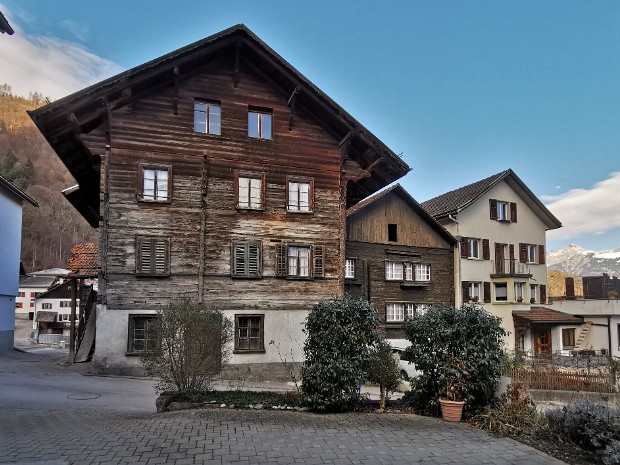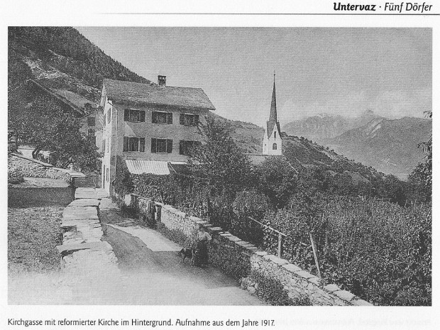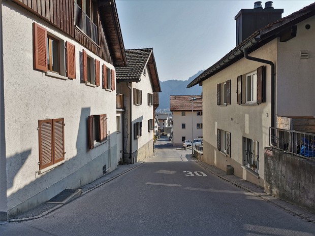 Eine der historischen Gassen im Ortskern von Untervaz. Sie reicht von der Bädersbrücke (554 m) bis hinab zum Salabrückli (545 m) und ist ca. 250 m lang